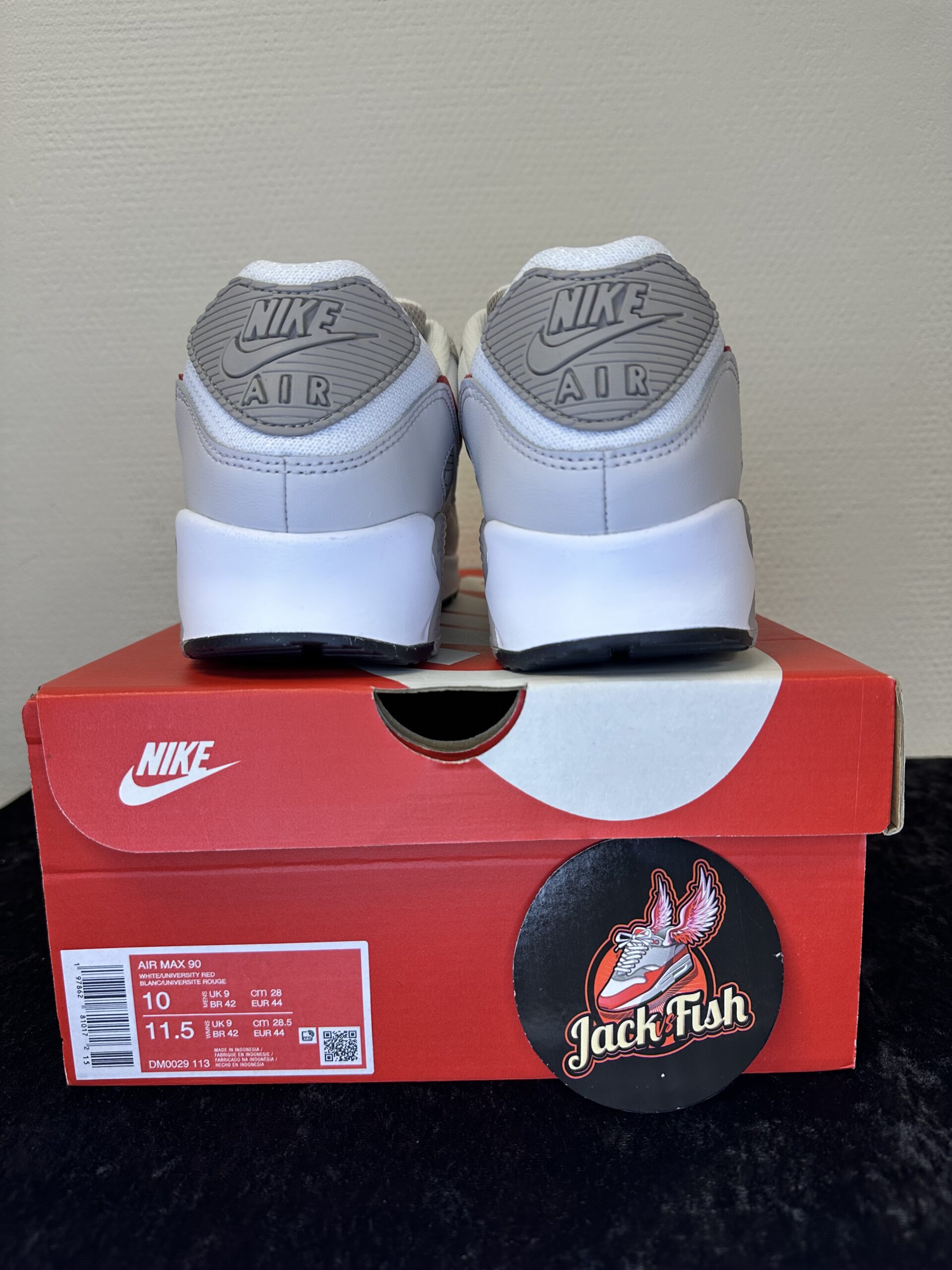 Bestel de Nike Air Max 90 ‘White College Grey Vast Grey University Red’ DM0029-113 vandaag nog bij JackvsFish en profiteer van snelle verzending en scherpe prijzen.