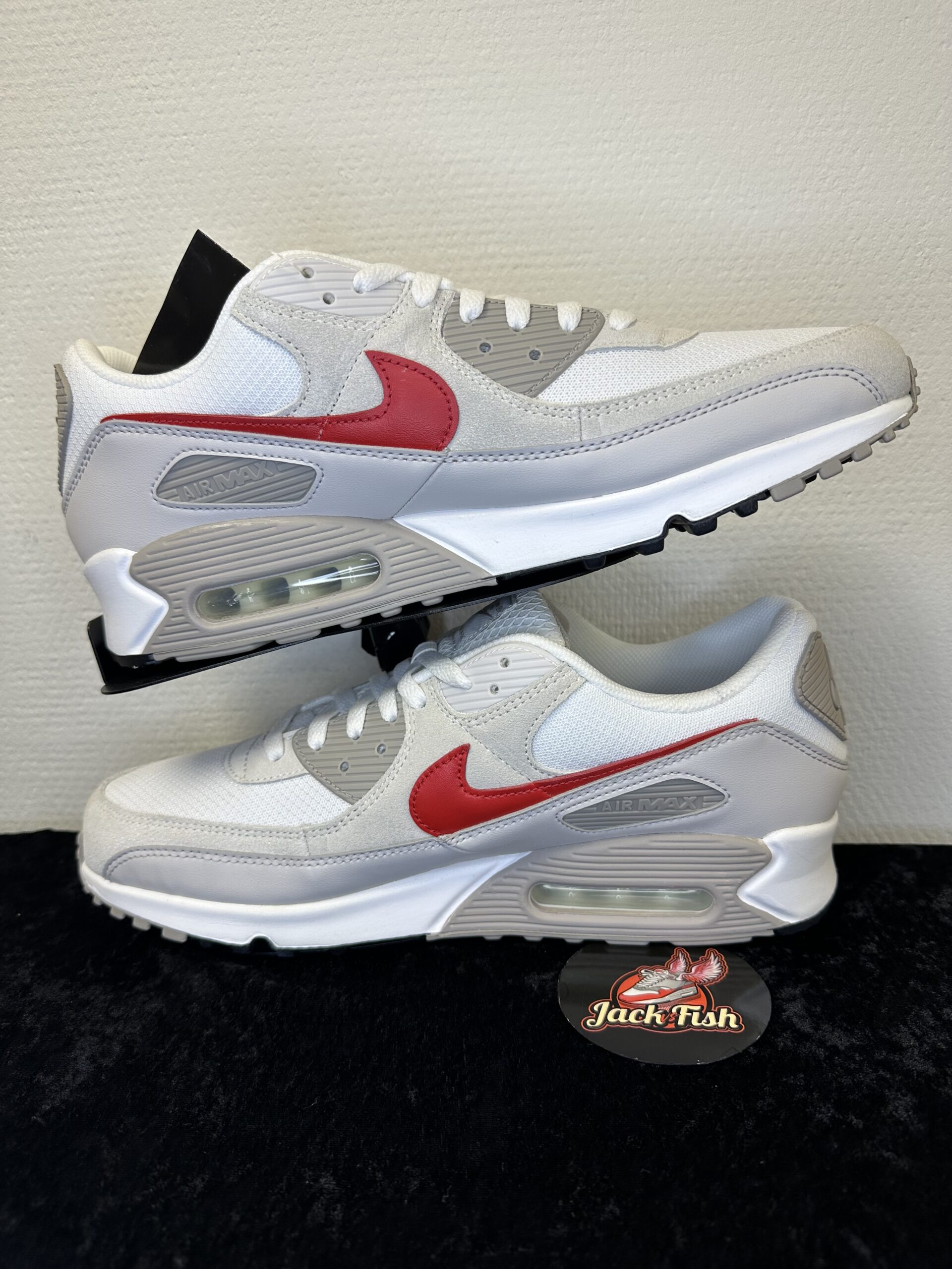 Bestel de Nike Air Max 90 ‘White College Grey Vast Grey University Red’ DM0029-113 vandaag nog bij JackvsFish en profiteer van snelle verzending en scherpe prijzen.