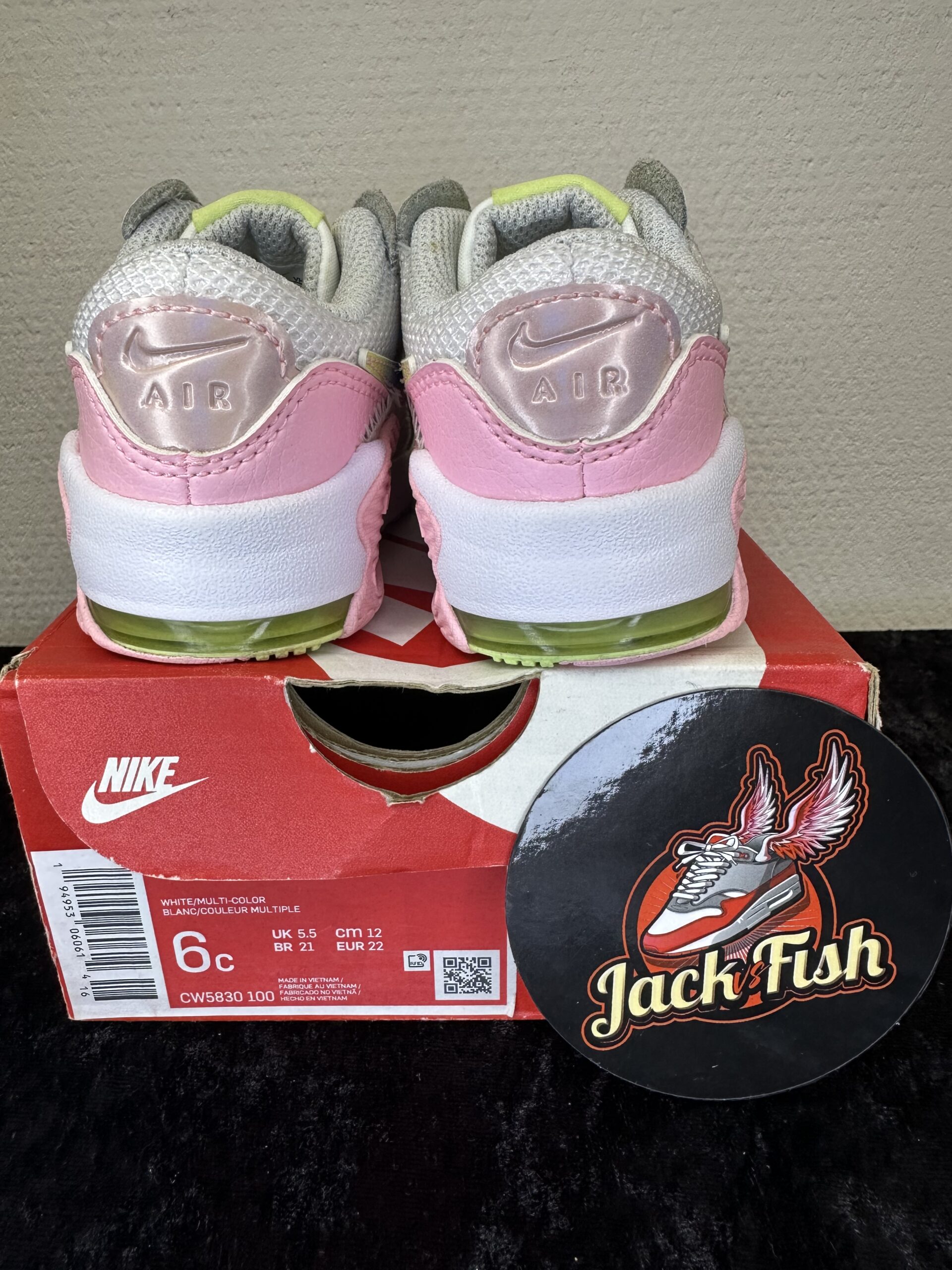 Bestel de Nike Air Max 1 Excee TD ‘White Arctic Punch’ CW5830-100 vandaag nog bij JackvsFish en geef jouw kind een comfortabele en stijlvolle start.